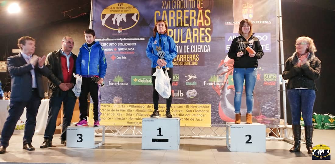 En la categoría femenina, fue la ganadora en 2017, María Jesús Algarra (San Lorenzo de la Parrilla), la que se mantuvo siempre en cabeza hasta línea de meta, mientras por detrás, una lucha muy igualada entre las siguientes tres chicas. Finamente, el segundo puesto fue para María Victoria Alonso, del Runfaster, y a escasos segundos de ella, entró la local María Julia Peñarrubia, del C.A Villarta, en tercera posición.