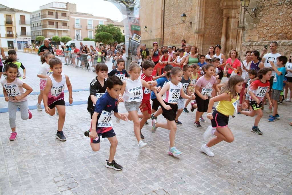 La tarde comenzaba con las carreras infantiles que comenzarían pasadas las 20:15 h en las que los más pequeños disfrutarían corriendo por los alrededores de nuestra plaza, distinguiendo por sus distintas categorías. Al terminar todos ellos recibieron sus tan merecidas medallas y una bolsa de gominolas para el disfrute de los más pequeños.
