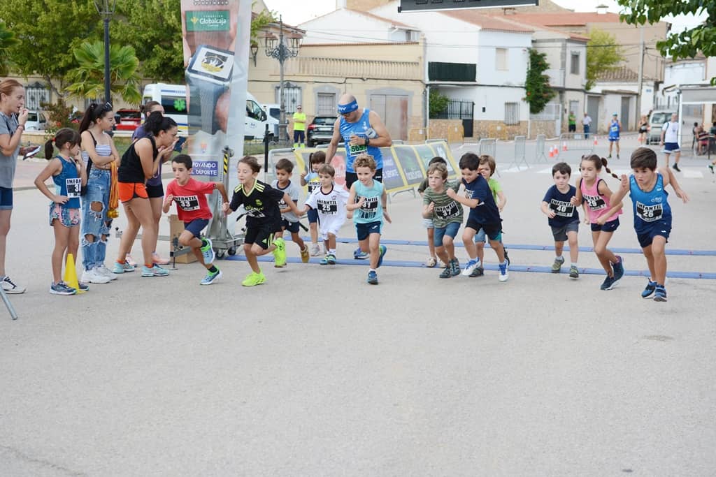La carrera comenzaba puntual a las 17,30 h. con una temperatura alta , pero no tanto como lo esperado, lo que permitió correr con unas condiciones adecuadas, aunque antes se comenzaba con diversas carreras Infantiles realizando 2 mangas diferenciadas por edad en un circuito urbano.