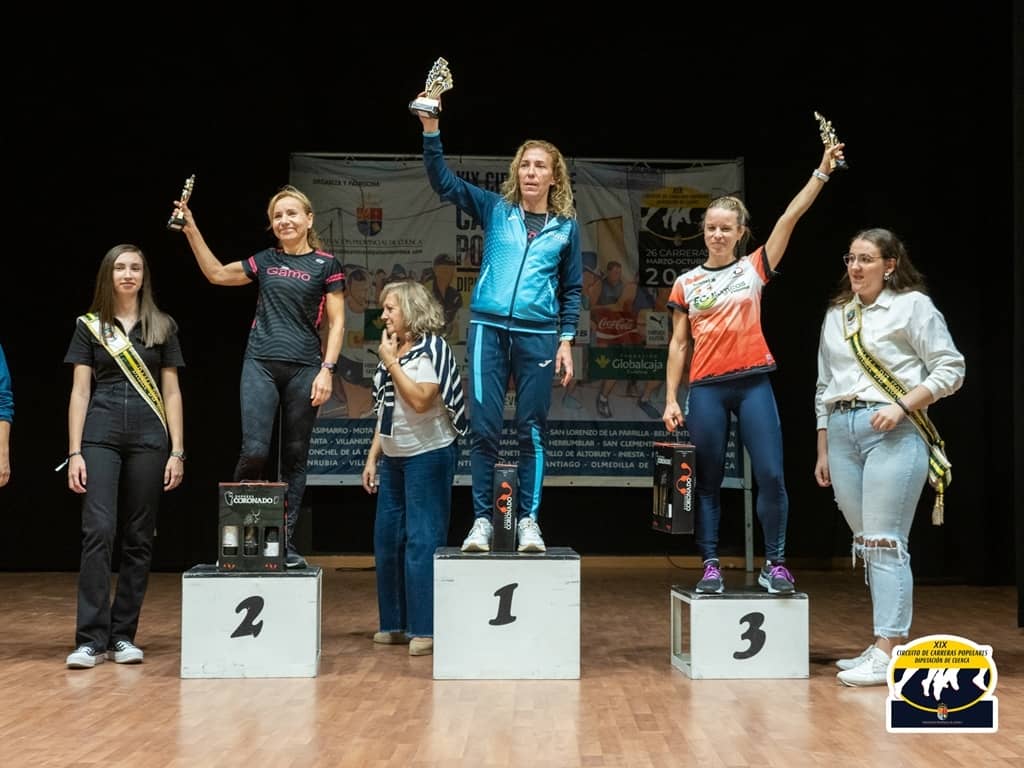 En la general femenina brillaron las del CA el Gamo de Motilla del Palancar Mª José Engra y Ascensión Leal, que entraban en primera y segunda posición, si bien Mª José entraba con más de un minuto de antelación sobre su compañera. Tercera sería Rocío López de CA Cuenca.