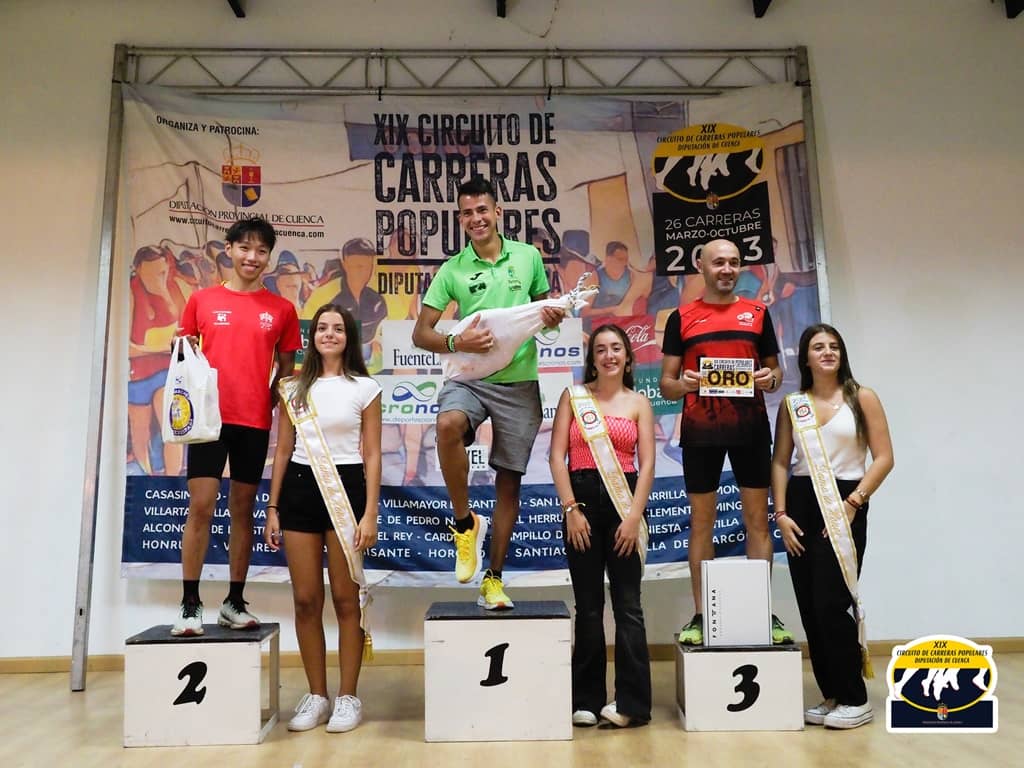 Y se cerró la prueba, con un mérito más que reseñable y aplaudible, Juan Añover Ortiz del C.A. Villamayor. La organización de la prueba decidió entregar un premio especial a la constancia y perseverancia, recibiendo en el pódium el calor del aplauso de todos los asistentes y acompañado por todas las damas y la reina de las fiestas que fueron las que realizaron la entrega de todos los trofeos. Estas carreras seguirán siendo populares mientras sigamos teniendo muchos corredores como él, desde aquí un nuevo aplauso más que merecido.