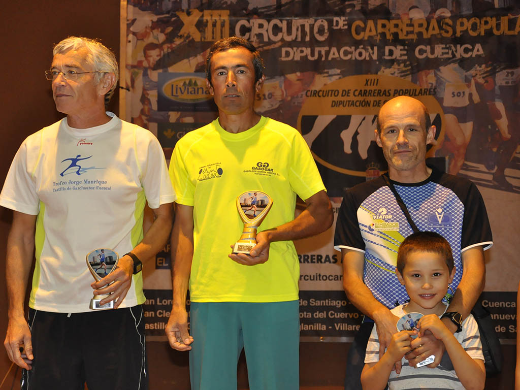 En la categoría masculina no hubo sorpresas, y tras la salida, y en apenas 500 ms., un Marcos Hortelano intratable se iba en solitario, le siguieron -los que a la postre serían segundo y tercero-, el veterano Santiago García e Iván Salto. Marcos impuso un ritmo de 3´20” el kilómetro que le permitía imponerse sin complicaciones con un tiempo final de 27´42”.