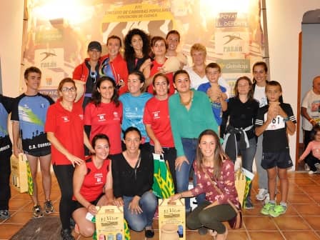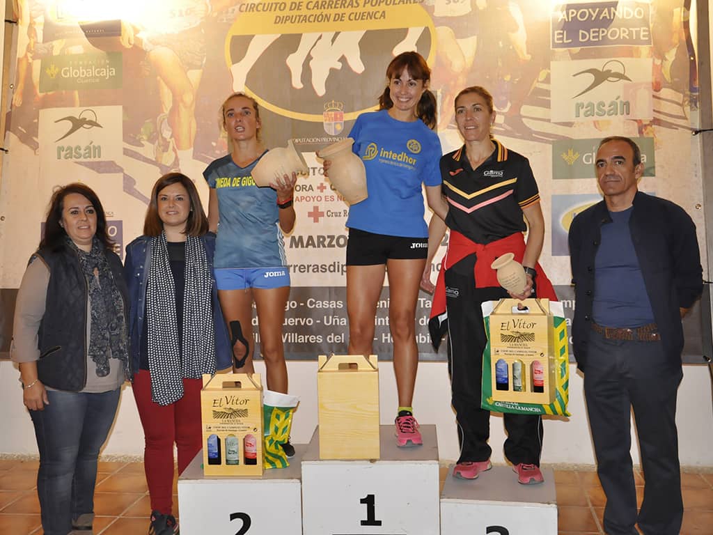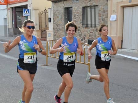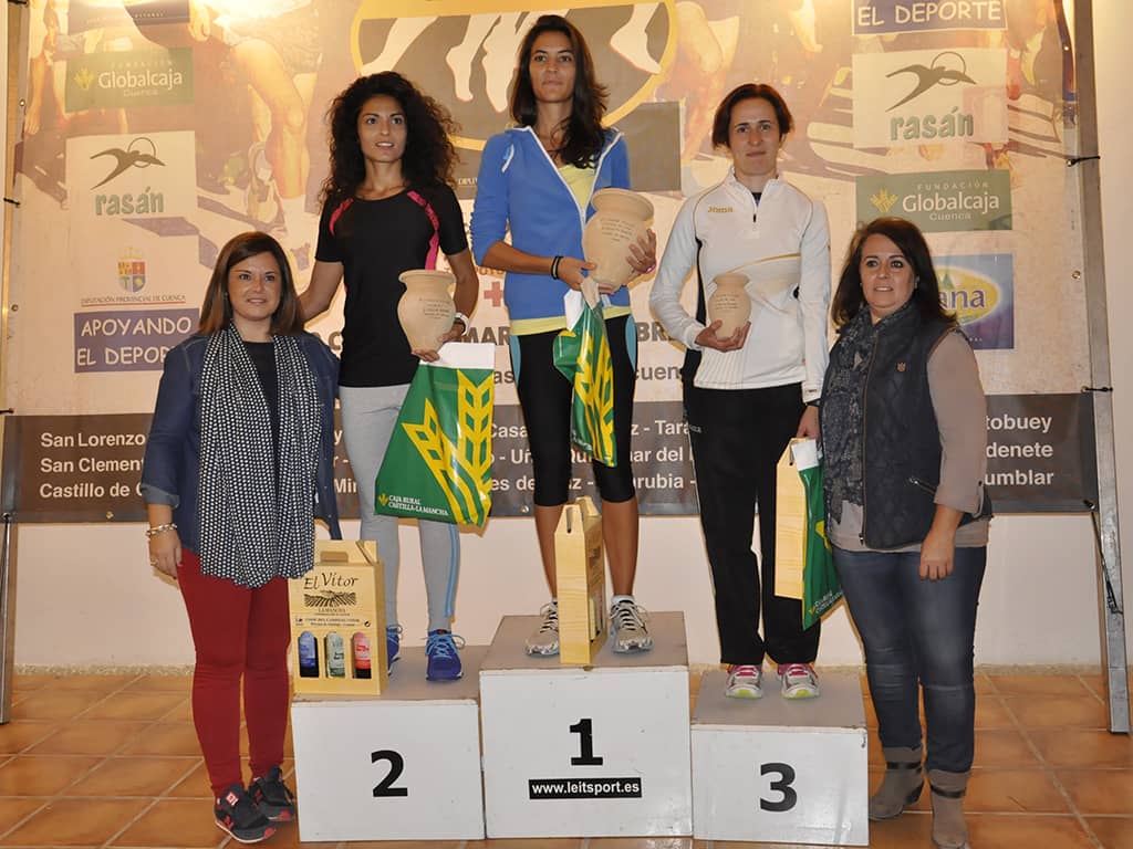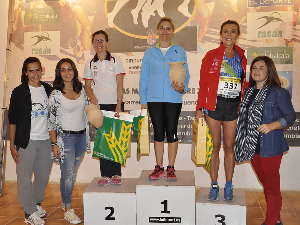 En la categoría femenina las distancias entre las primeras fueron más pequeñas y apenas 10 segundos permitieron a dos veteranas situarse en los primeros puestos, Gema Fernández -del CA Manchego-seguida de la del CA Pineda de Cigüela Elena Pérez. Siendo tercera la absoluta Coral Torrijos del Correligero, a la que su prevista participación en la exigente carrera de Montaña Piedra Yunque -apenas doce horas después- no le impidió rodar a buen ritmo.