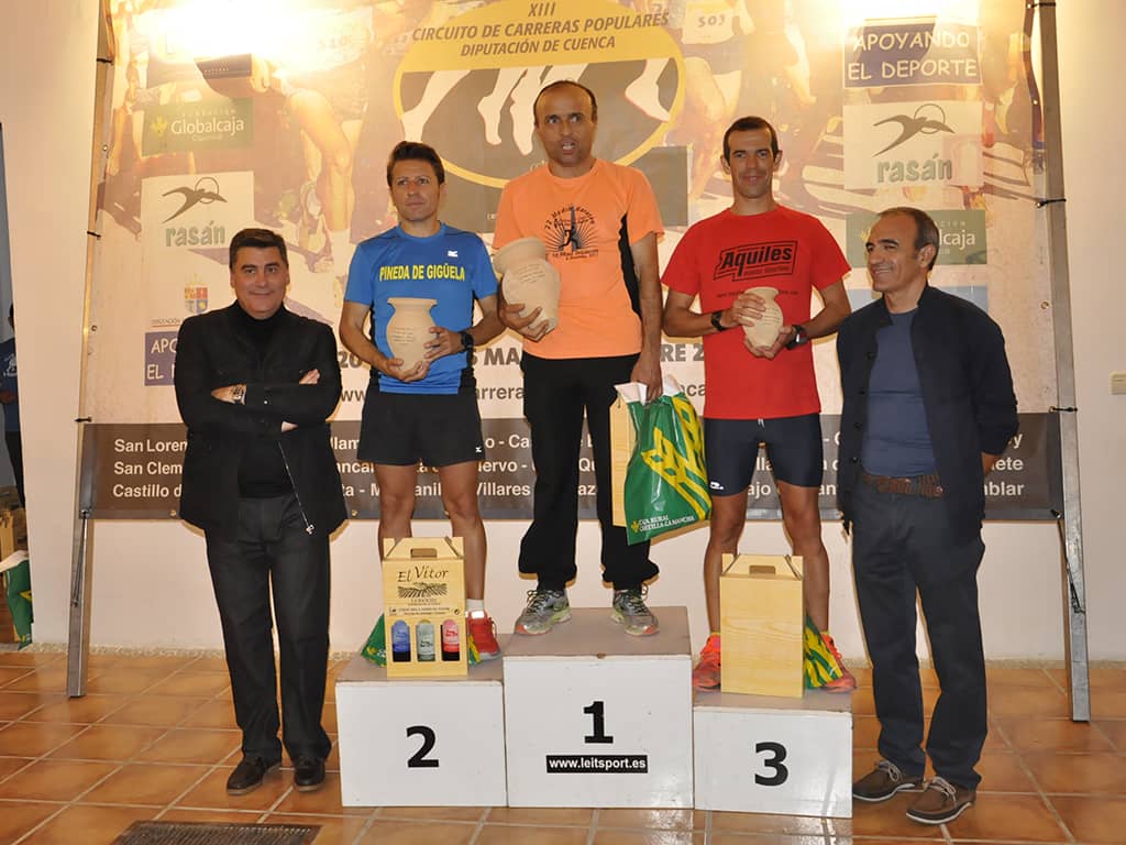 Ante la ausencia de los grandes dominadores del Circuito, Marcos Hortelano y Mª Jesús Algarra, que se desplazaban a Marruecos para participar en una Carrera de Montaña por el Atlas, la carrera tuvo otros protagonistas de gran nivel. La categoría masculina fue comandada desde el principio por el que a la postre sería el ganador de la prueba, el del C A Tarancón Iván Salto Mora que finalizó con un tiempo de 33´56”. A 24” llegaba como segundo clasificado Alfonso Expósito Giménez del C.D.E MTB Mira, siendo tercero nuestro triatleta olímpico Josemi Perez Martínez del CA Cuenca, que pese a no estar en activo mantiene un excelente nivel.