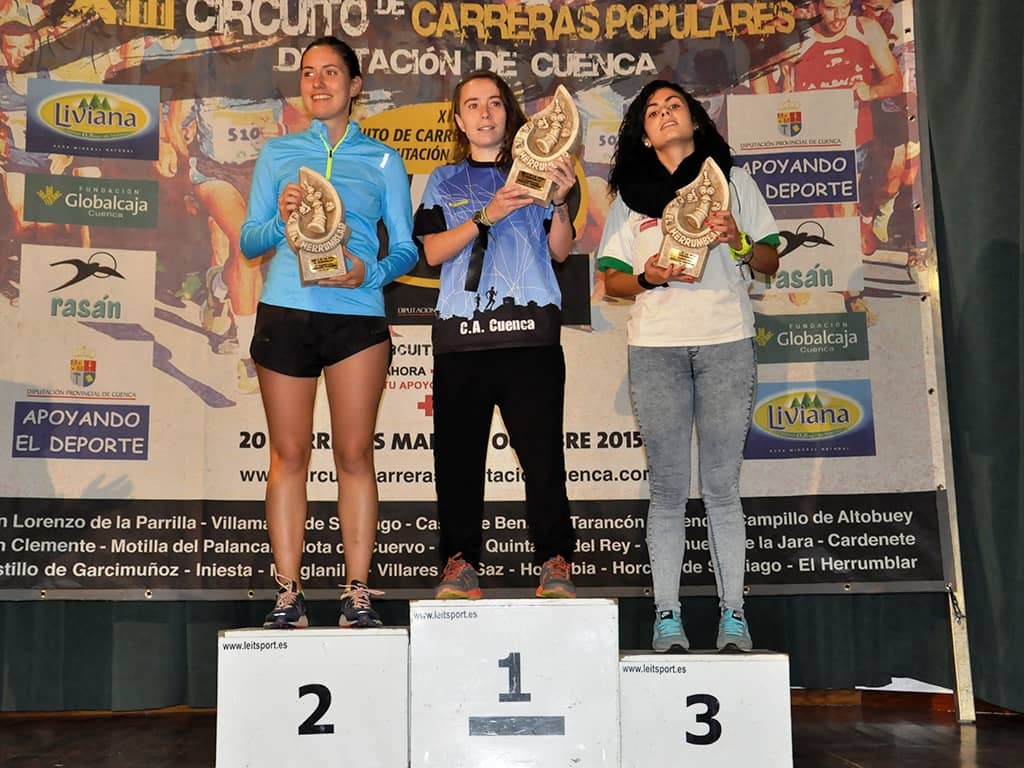 El podio en categoría absoluta masculina lo conformaron Iván Salto, Alfonso Expósito y Pedro Ignacio Hervias, del C.D.E.A. Tarancón. A Sara Herráiz le acompañaron en el podio de la categoría absoluta femenina Estrella García, de San Lorenzo de la Parrilla y Gema García, del C.A. Cuenca.