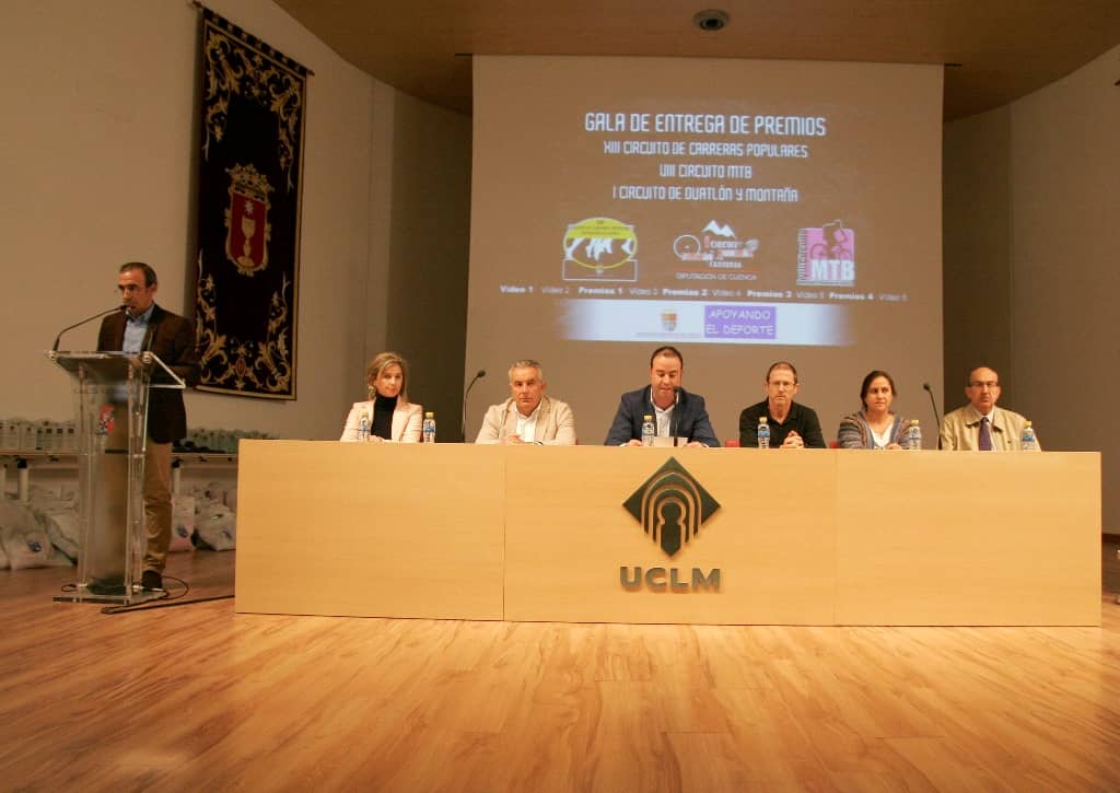 El pasado sábado 28 de noviembre tuvo lugar en Cuenca, en el Paraninfo de la UCLM, la Gala final de entrega de premios y trofeos de los Circuitos de Carreras Populares, MTB y Duatlón y carreras por Montaña de la Diputación Provincial de Cuenca. Un Paraninfo que se llenaba en una tarde de fiesta deportiva con la asistencia de casi medio millar de personas, entre deportistas y familiares.