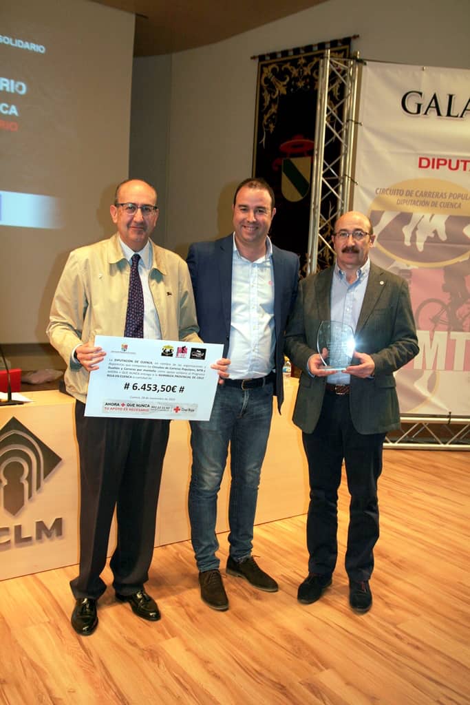 Par terminar se entregaron placas de agradecimiento y recuerdo a todos los organizadores, colaboradores y patrocinadores, y se finalizaba con la entrega al Presidente Provincial de la Asamblea Local de la Cruz Roja José Ángel Palacios, acompañado del Vicepresidente Francisco Lacasa, del talón de los fondos recaudados por todas las pruebas para el programa solidario “Ahora + que nunca” que este año ha superado ampliamente al del año anterior recogiendo la cantidad total de 6.453,50 €.