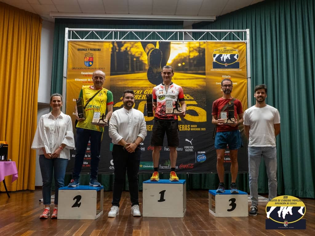 En la categoría femenina, la victoria fue para María Jesús Algarra, de San Lorenzo de La Parrilla, quien realizó una carrera impecable y cruzó la meta en 43 minutos y 46 segundos. Su esfuerzo y técnica le valieron el primer puesto, y en el podio la acompañaron Paola María Niño Torrijos, del C.A. Correligero Cuenca, y María José Engra Orden, del Gamo Motilla, quien además recibió el dorsal Oro, un reconocimiento que la acredita como la primera clasificada actual del circuito.