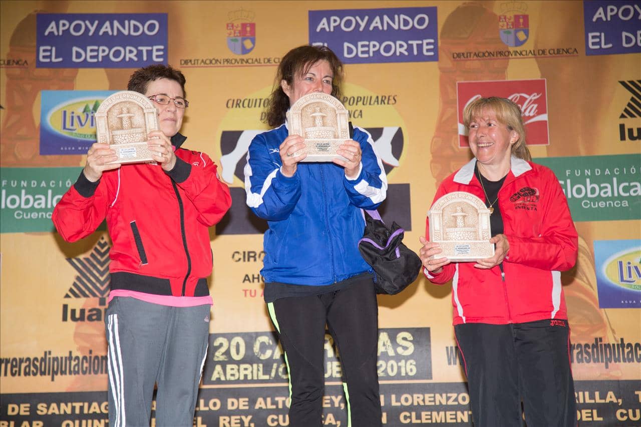 En mujeres, dos veteranas se imponían en la general, fueron Mª Ángeles Magán del CA Albacete, que viene obteniendo unos excelentes resultados, y no tuvo rival cruzando la meta en primera posición con un crono de 37’57”. Seguida de la valiente Cristina Belmar (CA Cuenca) a 3’06”, siendo tercera la absoluta femenina Gema Fernández (CA Villamayor) a 3’50”.