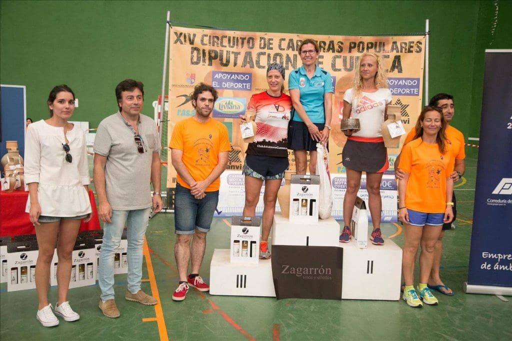 En categoría femenina, la veterana Mª Jesús Algarra (San Lorenzo de la Parrilla) era clara dominadora de la prueba, siendo el segundo puesto del podio para Ramona Trujillo (Los Trotones), y teniendo lugar una bonita lucha por el tercer puesto entre Paola Niño (C.A. Cuenca), Cristina Belmar (C.A Cuenca) y Sonia Toribio (Global Center), con premio para Paola.