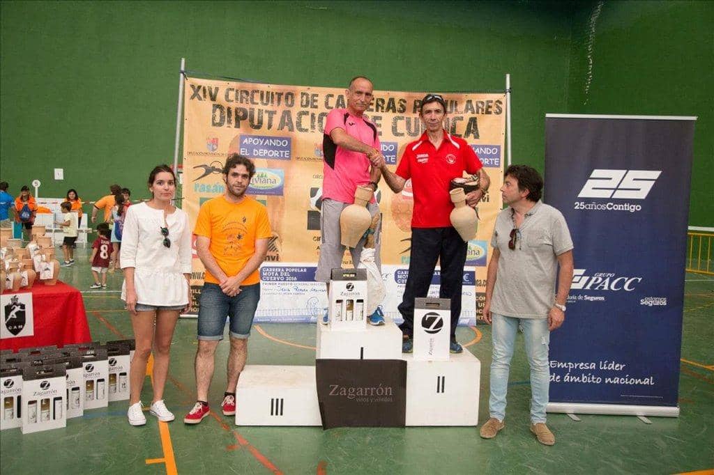 La entrega de premios y trofeos corrió a cargo del alcalde de Mota del Cuervo, Alfonso Escudero, de los concejales Jacobo Medianero y Miriam Romeral, y de la presidenta del Club Atletismo Moteño Ana Belén Lillo. Además de los premios para los mejores corredores, todos los participantes recibieron una bolsa del corredor con varios productos de la zona.